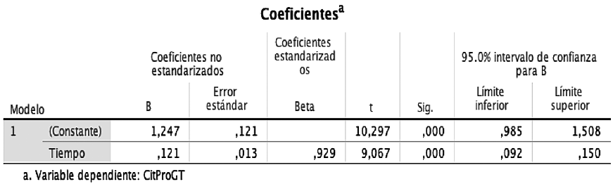 La expresión lineal para las citaciones promedio de GT se muestra a continuación: