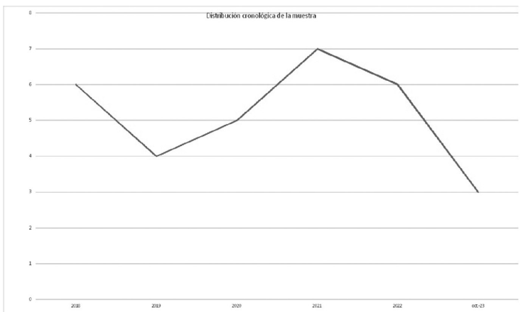 En la Tabla 2 presentamos los resultados de la distribución cronológica de nuestra muestra: