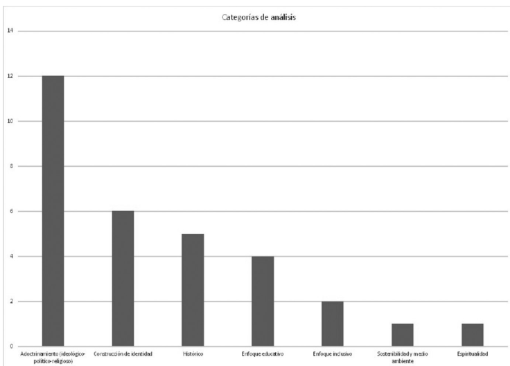 Este hecho nos permite observar que los estudios presentados se centran de forma más precisa en las etapas cuando los educandos exhiben mayor vulnerabilidad, especialmente en la etapa primaria, comprendida entre los 6 y los 12 años, cuando los niños aún no tienen asentada, autónomamente, ninguna ideología o creencia religiosa y ‘se mueven’ por las opiniones, ideas y creencias que perciben usuales en su contexto familiar, de pares o educativo. De este modo, el nutrido conjunto de textos educativos editados y orientados para estas etapas pueden llegar a ser una pieza clave para el adoctrinamiento religioso, político, ideológico, etcétera, como observaremos en el siguiente apartado al analizar las categorías temáticas de cada referencia.